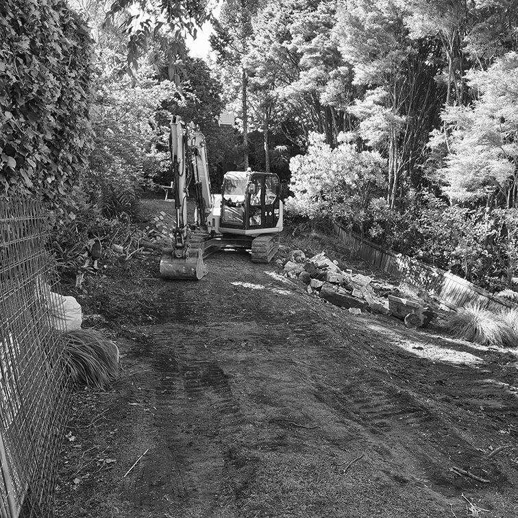 The modest sloping site was in a street with mostly traditional housing, and a densely wooded public reserve immediately beyond its south-west boundary.